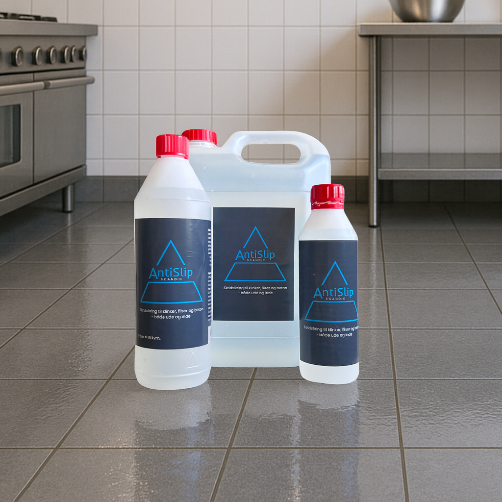 Vores AntiSlip løsning fås i praktiske størrelser, så du altid kan vælge den mængde, der passer til dit behov.